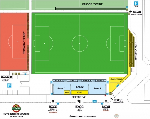- Блок 2 – притежатели на ВИП карти и подменени абонаментни карти за секторите „А” и „А1” на ст. „Христо Ботев”.